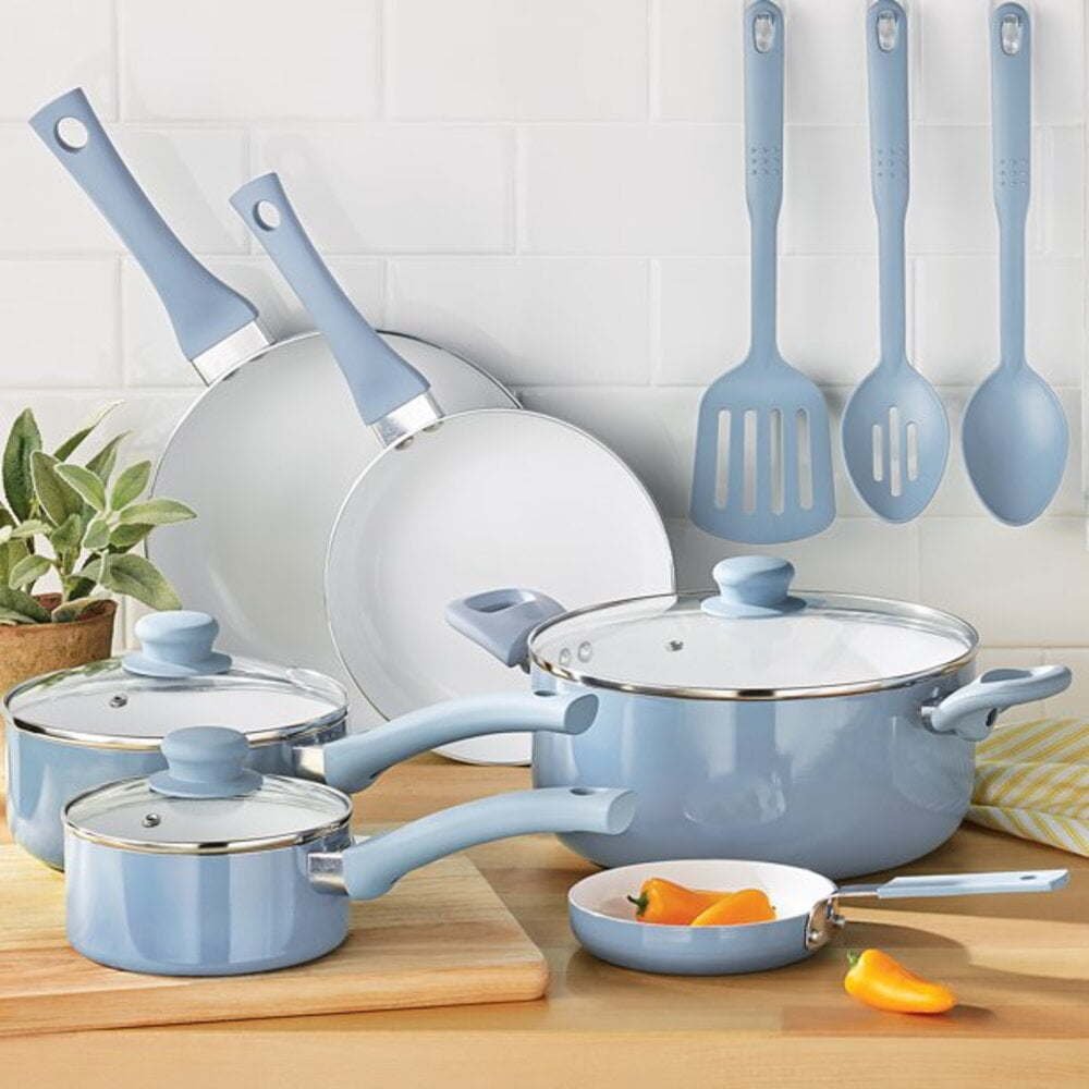Home > 12pc Ceramic Cookware Set, Blue Linen