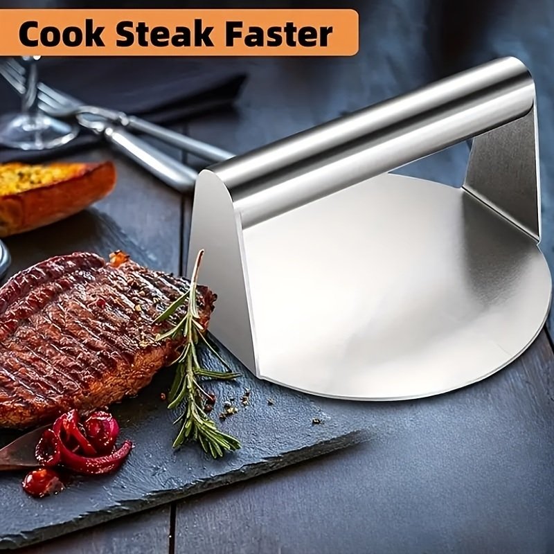 1pc, Handheld Burger Press, Stainless Steel Hamburger Press, Manual Meat Press, Steak Press, Grilling Meat Press, Dumpling Skin Pressing Tool, Round K