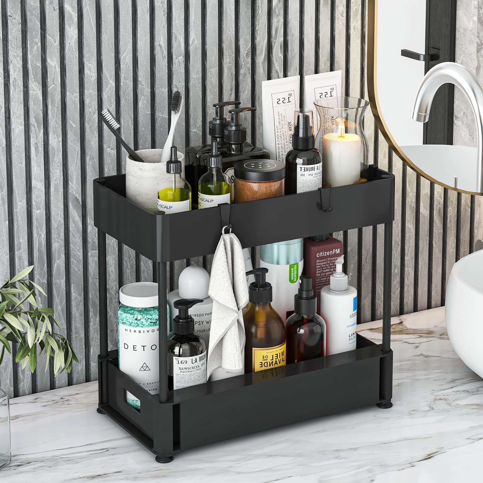2 Tier Under Sink and Bathroom Organizer , Pull Out Cabinet Organizer for Kitchen Sink Storage, Black