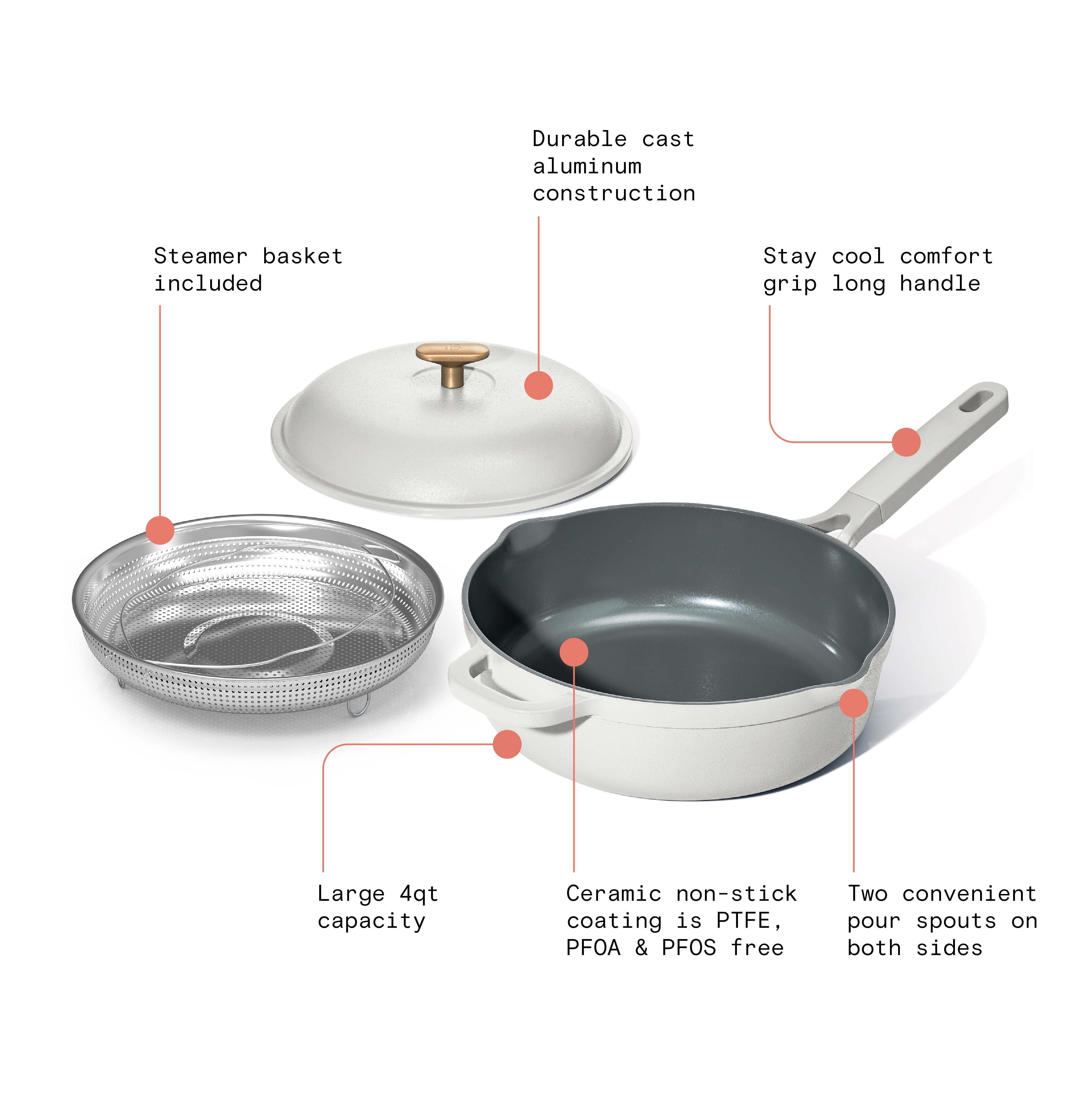 All-in-One 4 QT Hero Pan with Steam Insert, 3 Pc Set, Black Sesame by Drew Barrymore