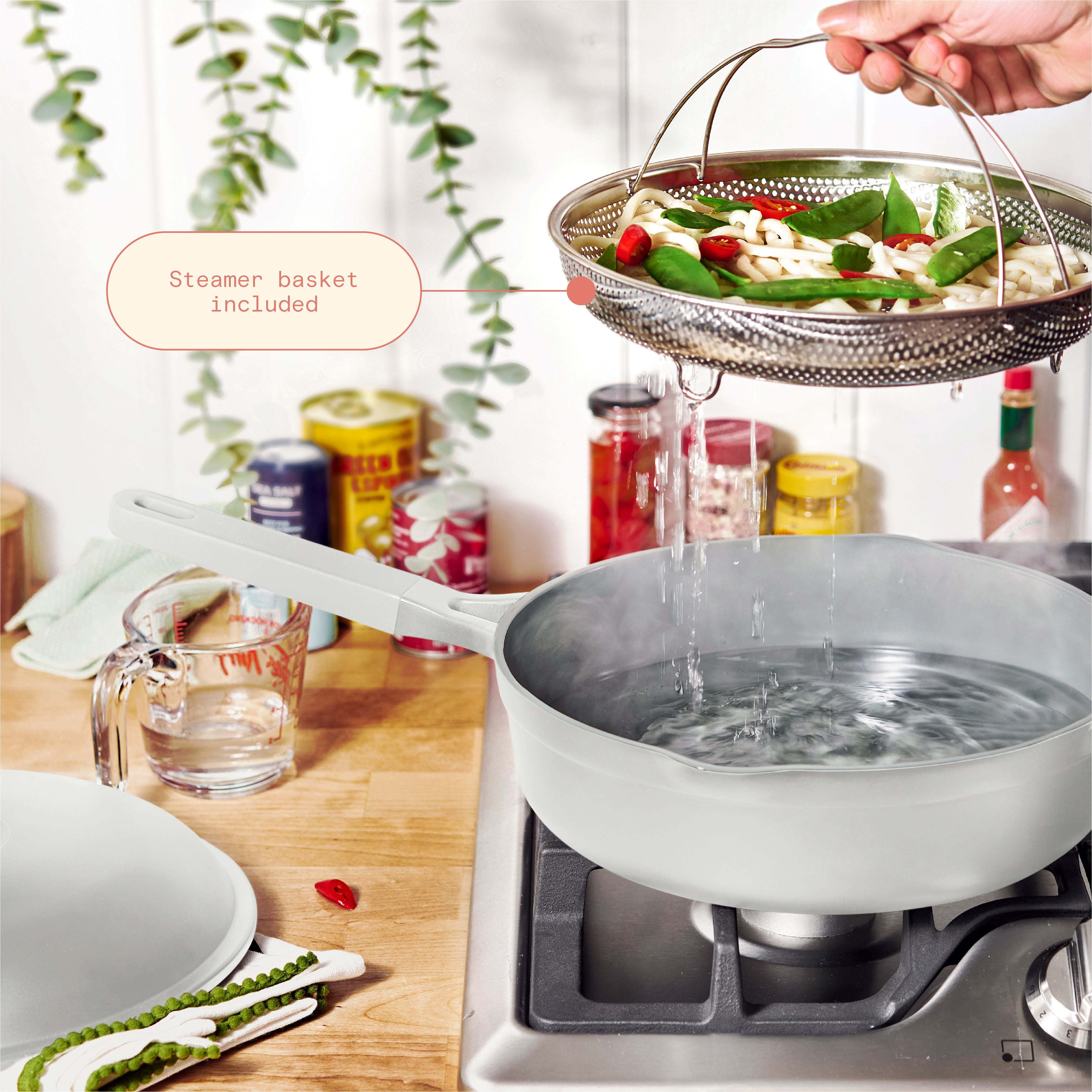 All-in-One 4 QT Hero Pan with Steam Insert, 3 Pc Set, Cornflower Blue by Drew Barrymore