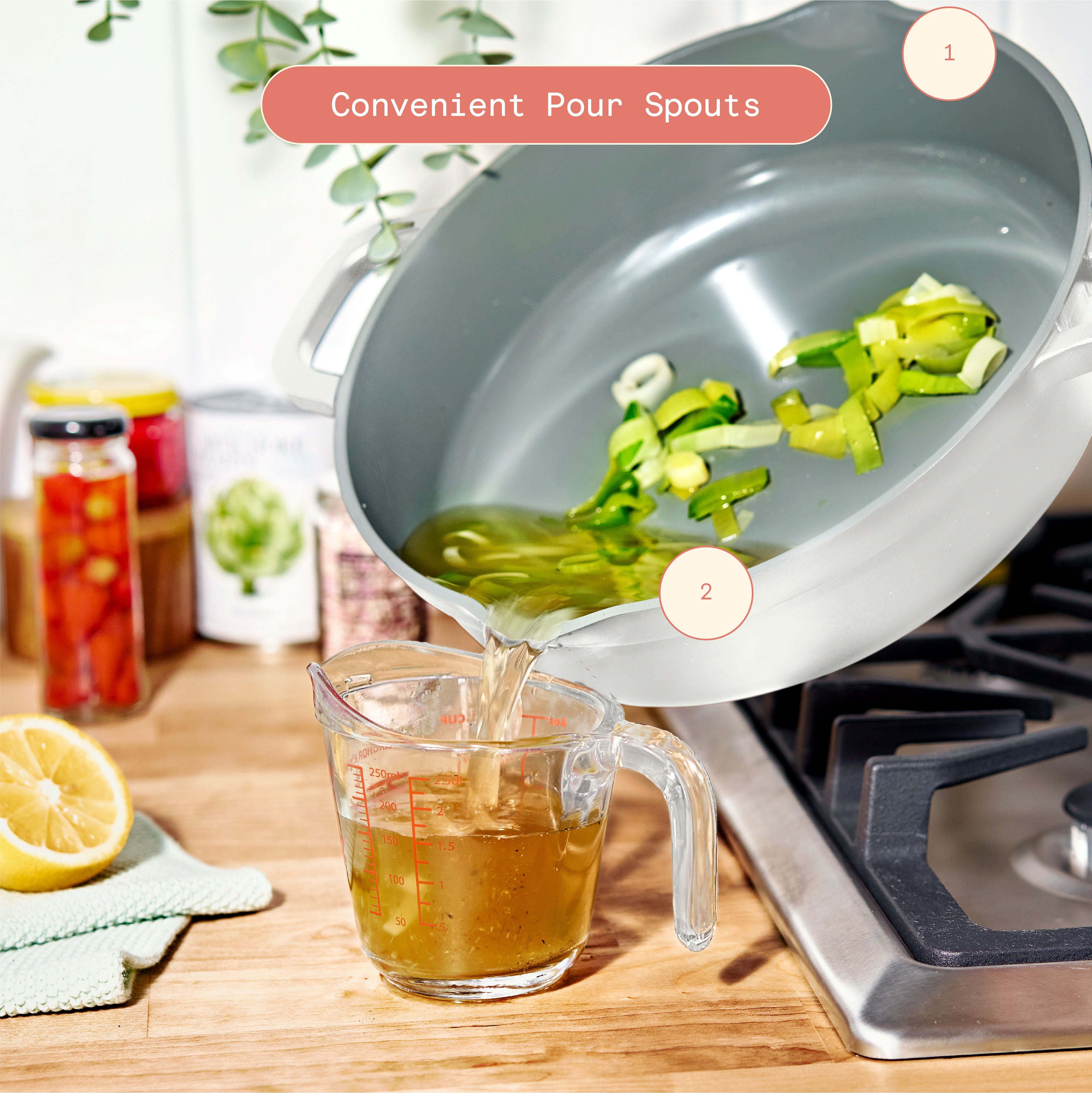 Elevate your everyday meals with the 4qt Cast Aluminum Non-Stick Hero Pan, the perfect one pot solution for any kitchen. Boil, Strain, Sauté, Simmer, Pan Fry, Sear, Braise, Steam, Stir Fry, and Serve. The Hero Pan is your versatile all-in-one cooking solution that empowers you to be the hero of your kitchen. The ceramic non-stick coating is PTFE, PFOA & PFOS free, making clean-up a breeze. With its lightweight design and convenient pour spouts, this pan is ideal for easy maneuvering. From stovetop to tabletop, simplify your cooking process and impress your guests with delicious meals cooked in just one pan.