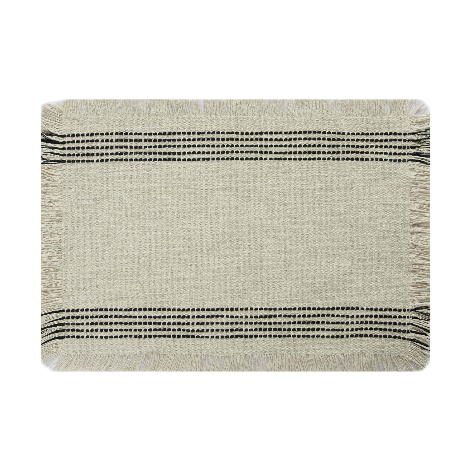 Make your dining space feel a little cozier with the Better Homes and Gardens Jett Stripe Woven Placemat. The 14' x 20' mats add texture to the table with their black-on-white stripe and tasseled perimeter. Great for everyday use, the placemats are versatile enough for parties or outside mealtimes. The 100% cotton fabric gives a subtle homey feel to each place setting. Protect your table from everyday wear and tear with style with the Jett Stripe Woven Placemat from Better Homes and Gardens.