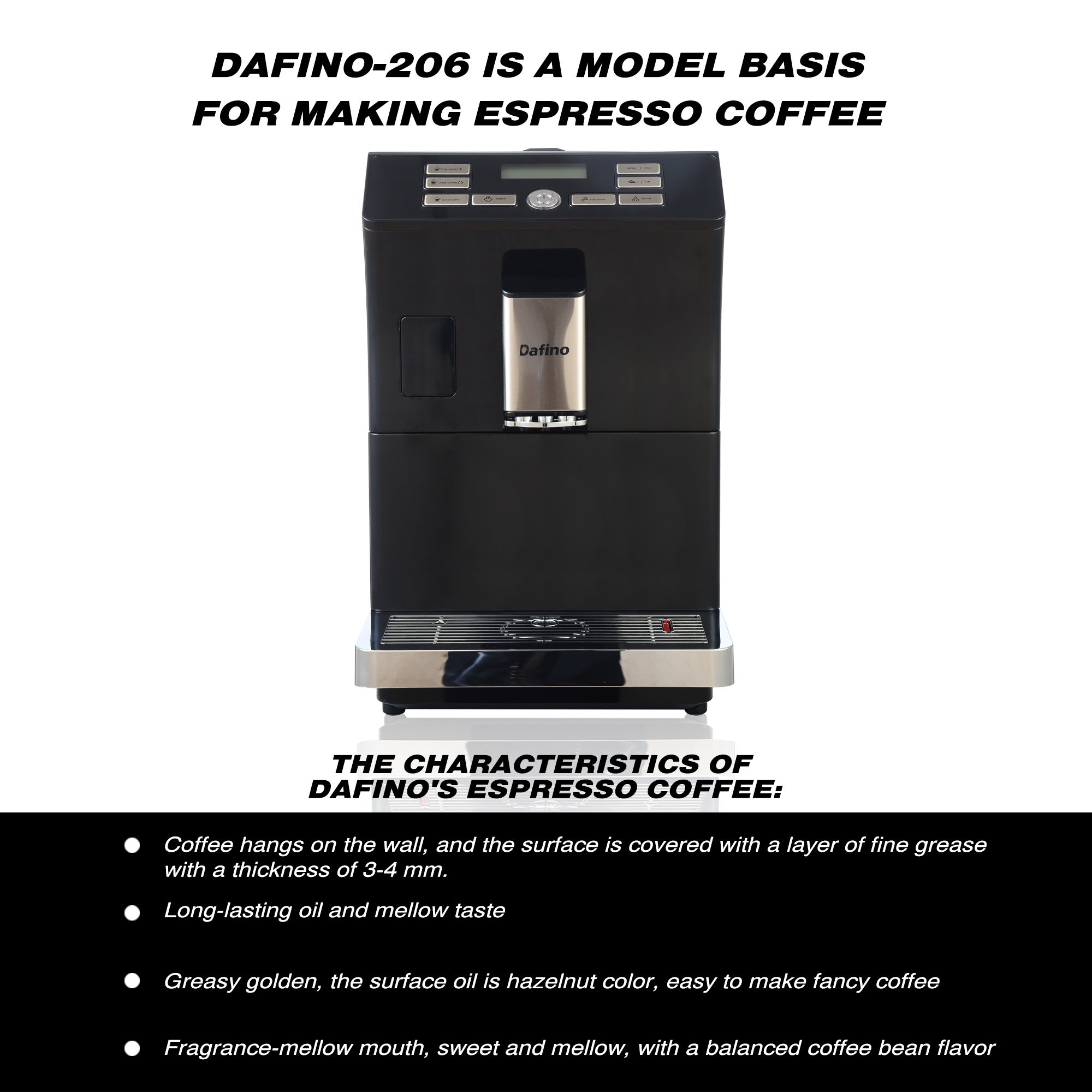 Dafino Greasy Golden Espresso Coffee Machine, Black - Customizable & Automatic