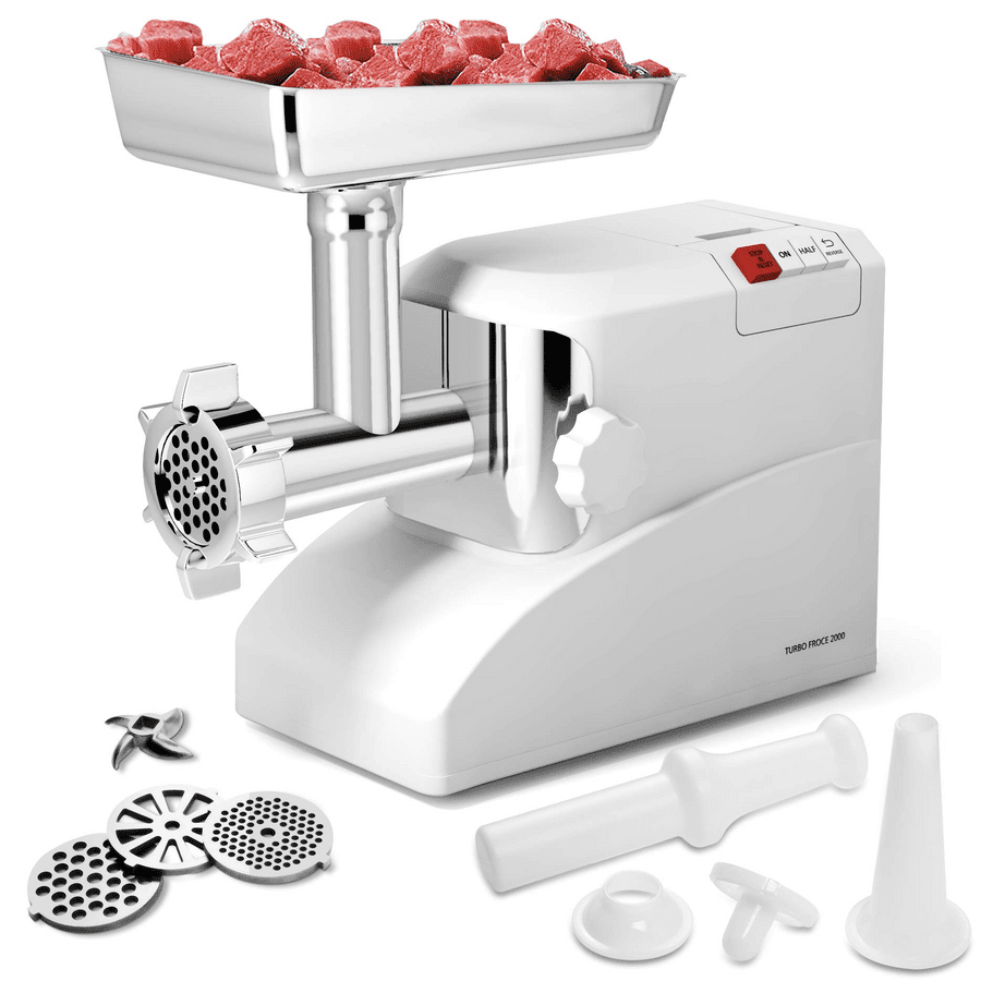 Complete Accessories for Various Food processing: Our electric meat grinder is equipped with three different cutting accessories for coarse, medium and fine grinds of meat. The package includes sausage stuffing funnel and kibbe attachments for quickly stuffing sausage and making kibbes. This meat grinder can grind not only meat but also other foods like chicken, carrots, mushrooms and so on.
