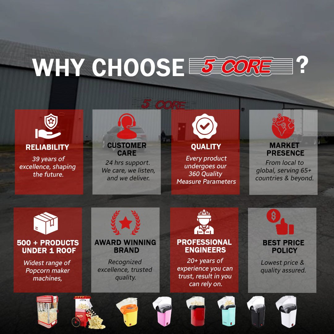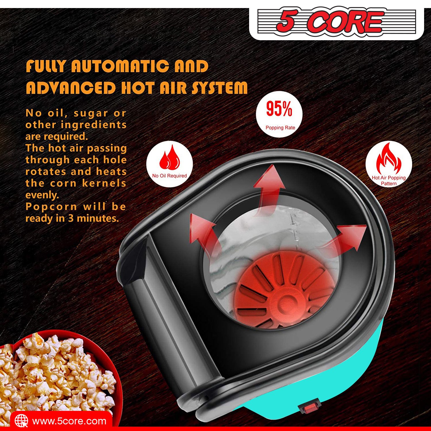 Indulge in the irresistible aroma of freshly popped popcorn with the 5 Core air popper popcorn maker. Say goodbye to unhealthy microwave bags and hello to hot; fluffy; and healthier popcorn in minutes. With its high-capacity heating chamber and one-touch start button; this popcorn machine is the perfect addition to your kitchen; whether you're hosting a movie night with friends or snacking on the couch. |
