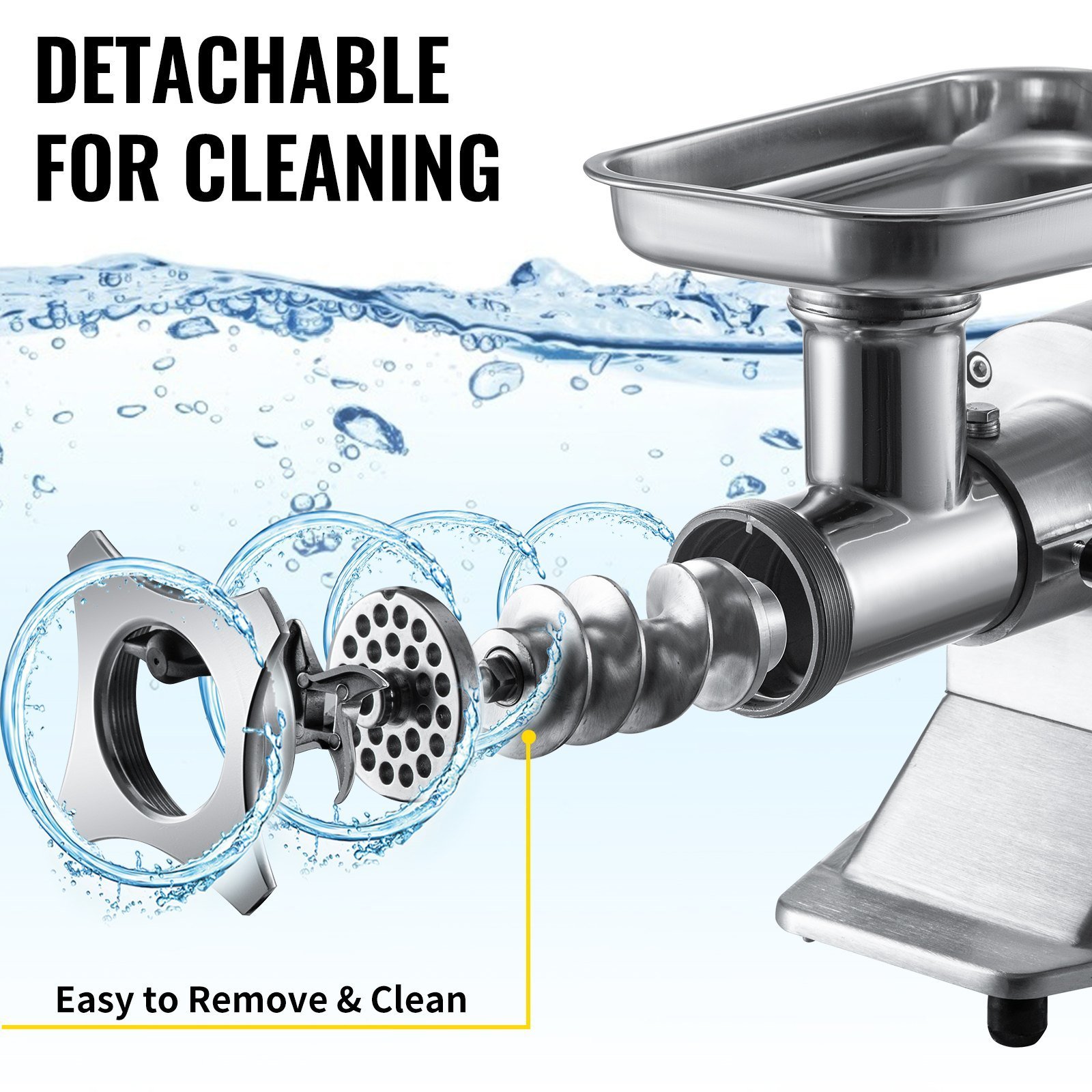 3.Simple to operate this electric meat grinder with just one button. Removable grinding head and feeding tray for easier cleaning.