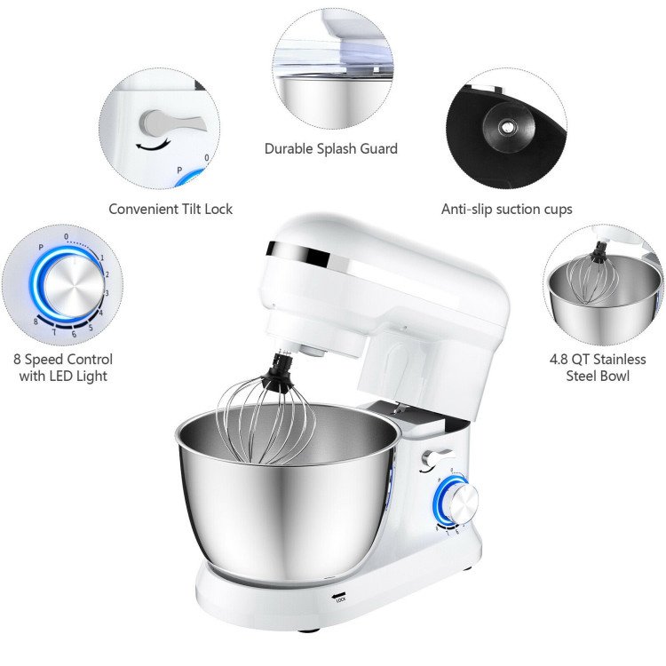 8-speed controller gives you choices from a slow stir to fast mix. The powerful mixing action for folding; kneading; mixing; beating; creaming and whipping with proper speeds makes the mixer perfectly suitable to different ingredients.