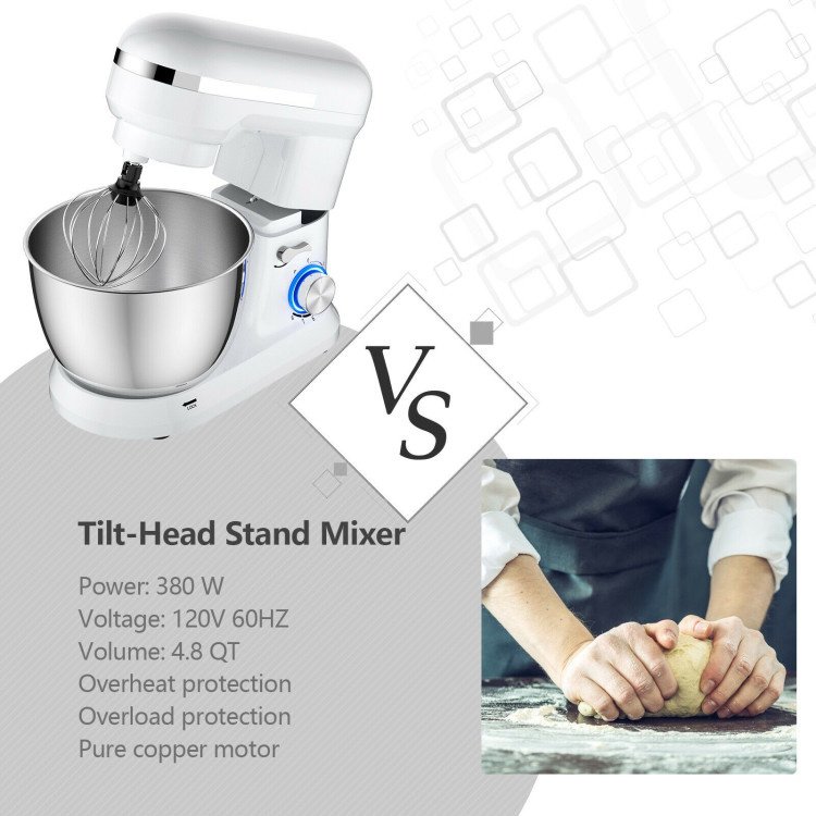 2.The tilt-head design mixer allows you to install or uninstall bowls and accessories easily. In addition, the base of the mixer is equipped with non-slip feet, which can make the whole machine stand firmly on the tabletop, ensuring the safety of use.