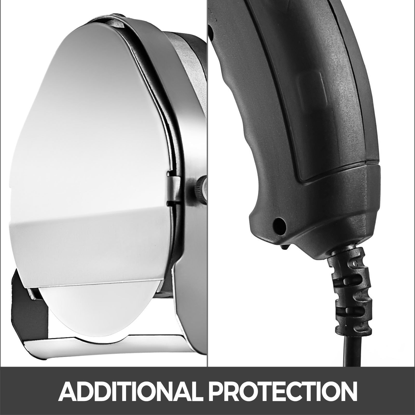 CONSIDERATE DETAILS- Metal blade cover protects the user from being hurt and prolongs blade service life. Protective sleeve around electric wire for carefree usage. Comfortable ergonomic designed handle, highly fits when grabbed, anti-skid and labor saving.