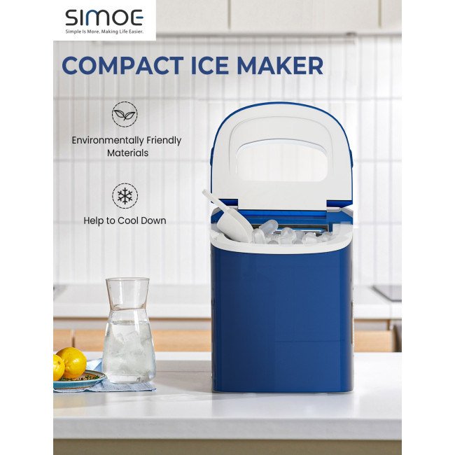Equipped with a powerful compressor and 9 evaporator columnsWith a 2.2 L water tank, 9 ice cubes will be made within 6-13 minutesCan make up to 26 lbs ice in 24 hoursThe giant ice storage capacity of 1.5lbs Intelligent function with ice-full indicator and water shortage indicatorThe water level mark suggests the right water height and ensures regular useEvaporator column of the nickel-plated surface with R134a refrigerantAutomatic shut-off function when ice basket fullTransparent viewing window, removable ice basket and ice scoopClear control panel, easy to useTransparent windows provide an excellent view to look insideRound and smooth ice, don't hurt mouthHollow Design for better use Big and small size available for different useCan cool drinks, food and make fruits smoothies and moreHelpful for medical treatment and first aid Portable and compact, easy to carryA wide range of personal and commercial use 55 DB low operating noiseFood grade material ensures the safety and healthy ETL certified and FDA certified
