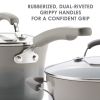 • The cookware set's two-tone exterior color makes a bold style statement; long-lasting nonstick interiors provide easy food release and cleanup