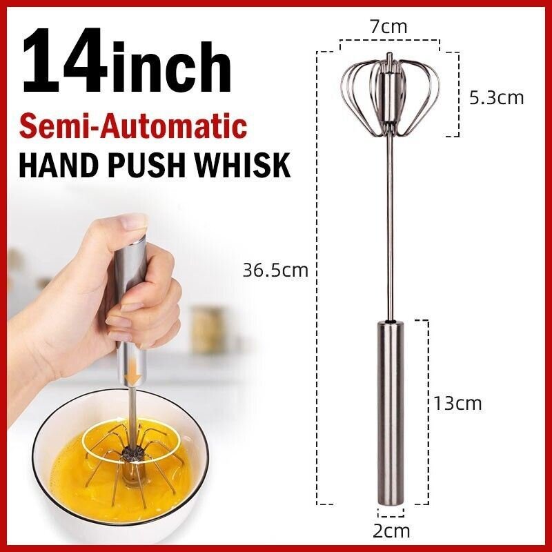 14 inch Stainless Steel Whisk Semi-automatic Press Whisk, Wire Whisk, Hand Push Rotary Blender, Mixer Egg Beater, Whisk for Cooking, Beater, Stirring Kitchen Balloon Whisk by KTATMARKETING