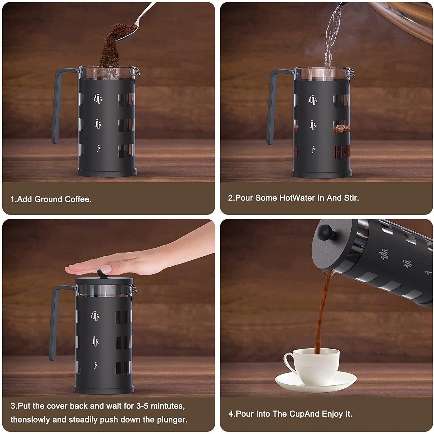 In addition; please confirm the size you want before buying. This product is a " small french press"; its size is "4.5 x 3.5 x 7 inches "; suitable for the daily use of 1 or 2 people.