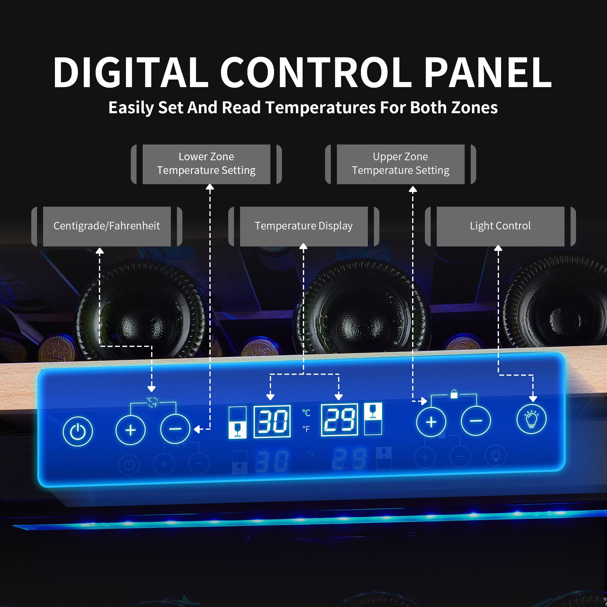 The SOTOLA Dual Zone Wine Cooler is the perfect solution for wine lovers who want to store diverse wine collections. With two cooling zones, this wine cooler can store different types of wine at their respective optimal temperatures. The upper zone ranges from 41°F to 54°F, perfect for sparkling wines and rosé, while the lower zone is between 54°F to 68°F, ideal for dry/white wine and red wines. This new model also provides a space for larger bottles, such as Champagne, making it a versatile option for wine collectors.