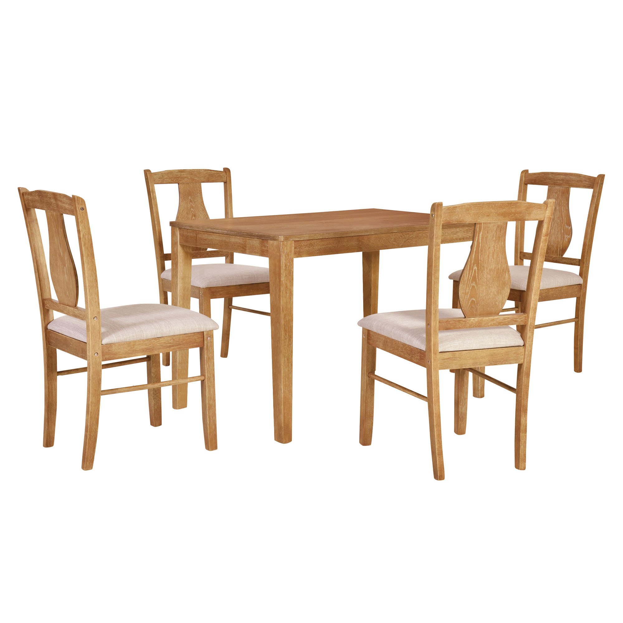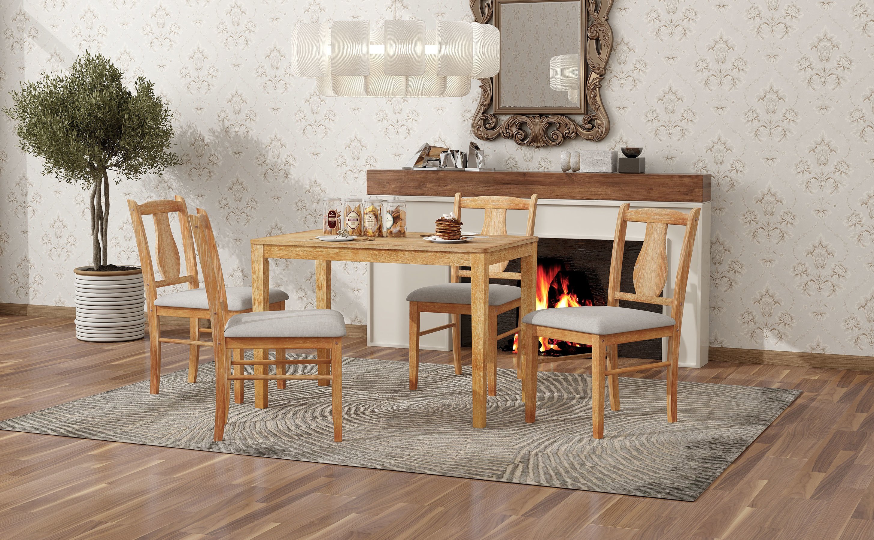 5-piece Dining Set: This dining set includes a rectangular dining table and four chairs, with a strong retro farmhouse feel. You can place them in your kitchen or dining room, they will perfectly decorate your home and add a touch of elegance.