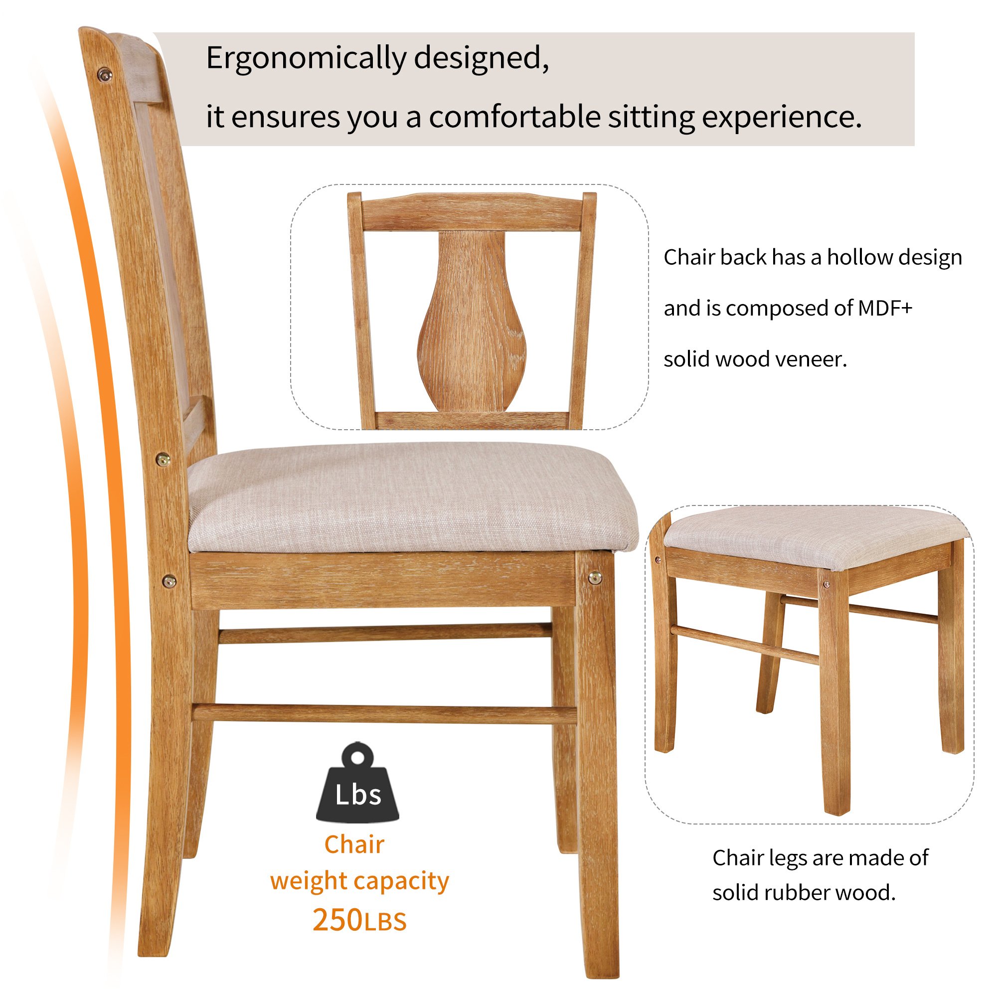 Exquisite Chair: The seat is made of MDF+polyester. The chair back has a hollow design and is composed of MDF+solid wood veneer. The chair legs are made of solid rubber wood. Ergonomically designed, it ensures you a comfortable sitting experience. Chair load-capacity: 250 lbs.