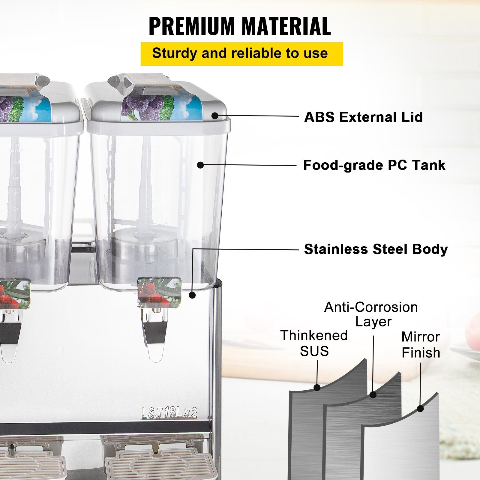 VEVOR 110V Commercial Beverage Dispenser; 9.5 Gallon 36L 2 Tanks Juice Dispenser Commercial; 18 Liter Per Tank 300W Stainless Steel Food Grade VEVOR 110V Commercial Beverage Dispenser; 9.5 Gallon 36L 2 Tanks Juice Dispenser Commercial; 18 Liter Per Tank 300W Stainless Steel Food Grade VEVOR 110V Commercial Beverage Dispenser; 9.5 Gallon 36L 2 Tanks Juice Dispenser Commercial; 18 Liter Per Tank 300W Stainless Steel Food Grade
